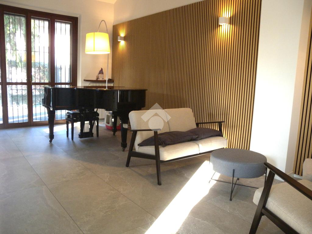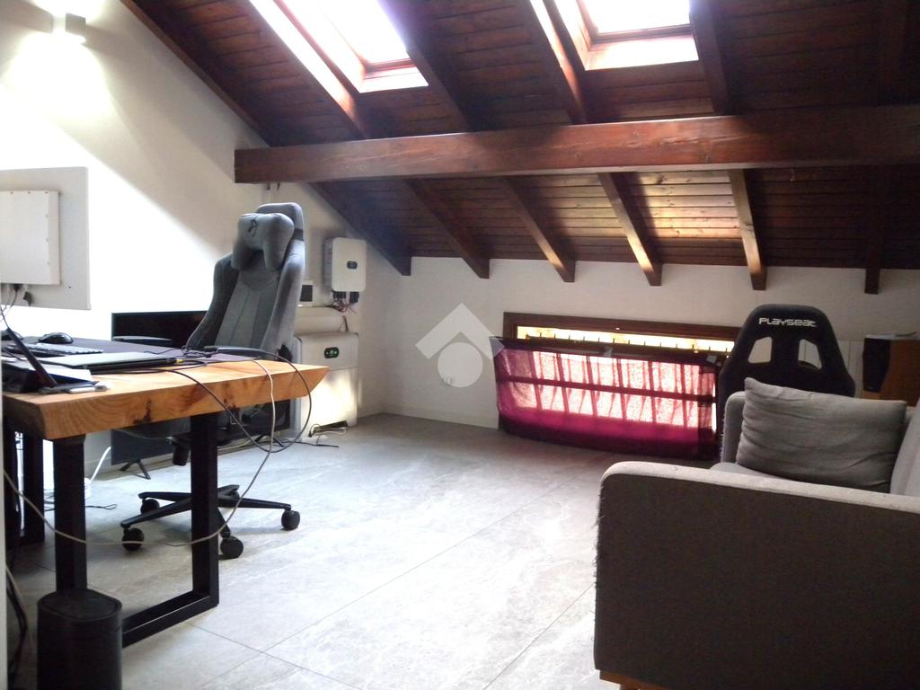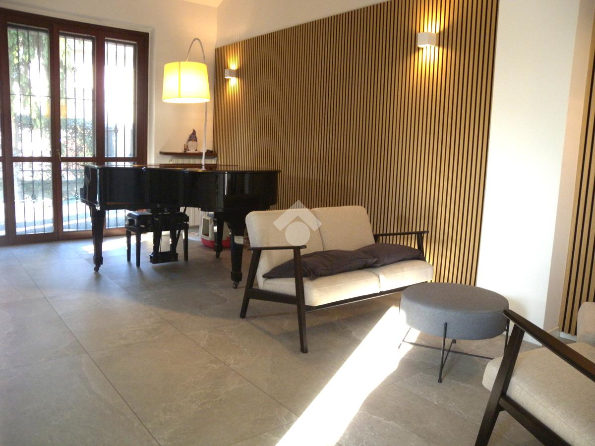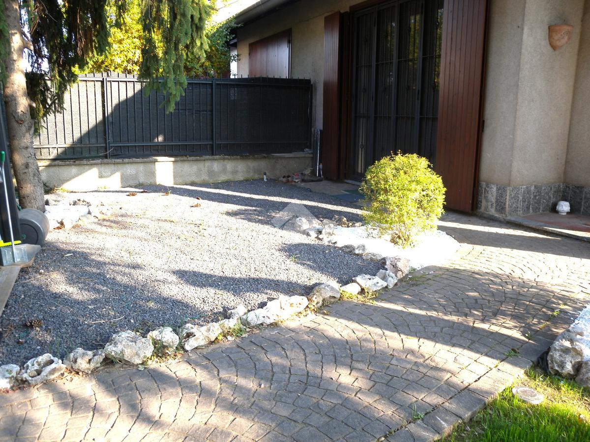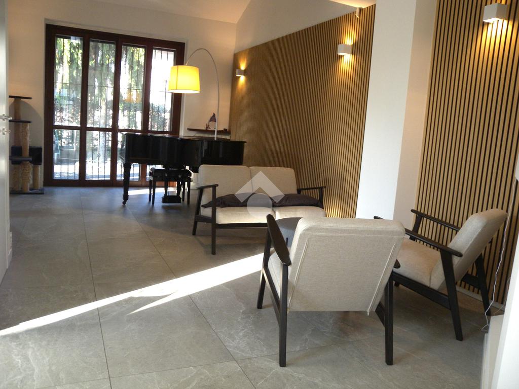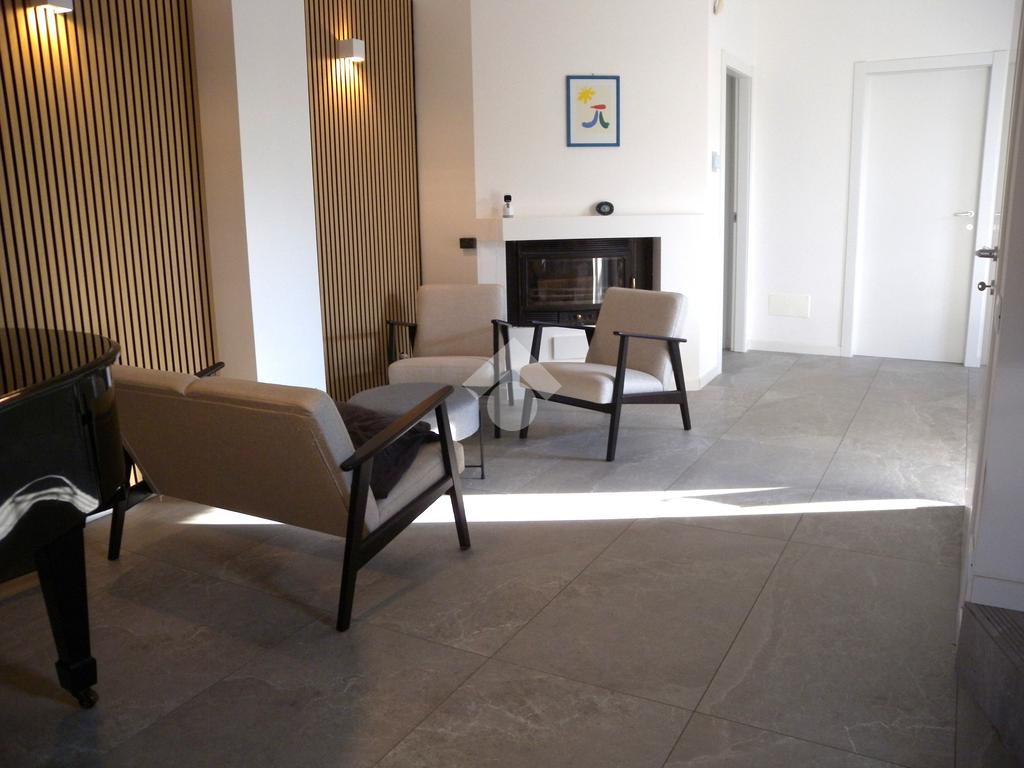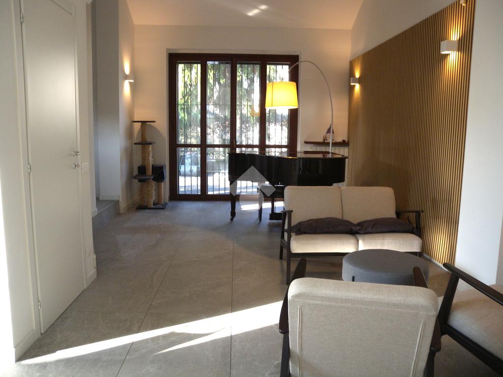 In zona residenziale, vicino alla fermata del bus che collega direttamente Origgio con Saronno e Rho, ampia porzione di villa bifamiliare di recente ristrutturazione senza amministrazione condominiale così composta: al piano terreno ingresso, ampio soggiorno-zona pranzo con camino, bagno e cucina abitabile con affaccio diretto sulla veranda esterna motorizzata ; al piano primo soppalco, camera matrimoniale, cameretta, bagno e rispostiglio; al piano sottotetto mansarda con travi a vista in legno; al piano seminterrato ampia taverna con camino, lavanderia e bagno. Il box doppio in larghezza è collegato direttamente alla taverna. Il giardino privato di buona metratura è disposto su 3 lati con un'ottima esposizione solare. La villa è stata completamente ristrutturata nel 2022, con il rifacimento dei bagni, degli impianti elettrico - idraulico, delle porte, della porta blindata, della pavimentazione, del videocitofono, dei climatizzatori con pompa di calore in classe 'A' e con l'installazione dell'impianto fotovoltaico sul tetto. A completare la soluzione impianto anti intrusione e irrigazione automatica del giardino.